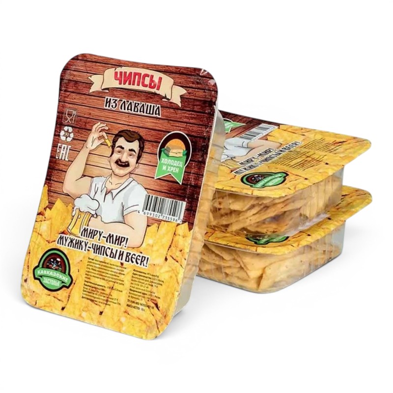 описание : Чипсы злаковые из лаваша со вкусом и ароматом «Холодец и хрен» ТМ «Кавказские застолья» контейнер 100 гр (1*16)
