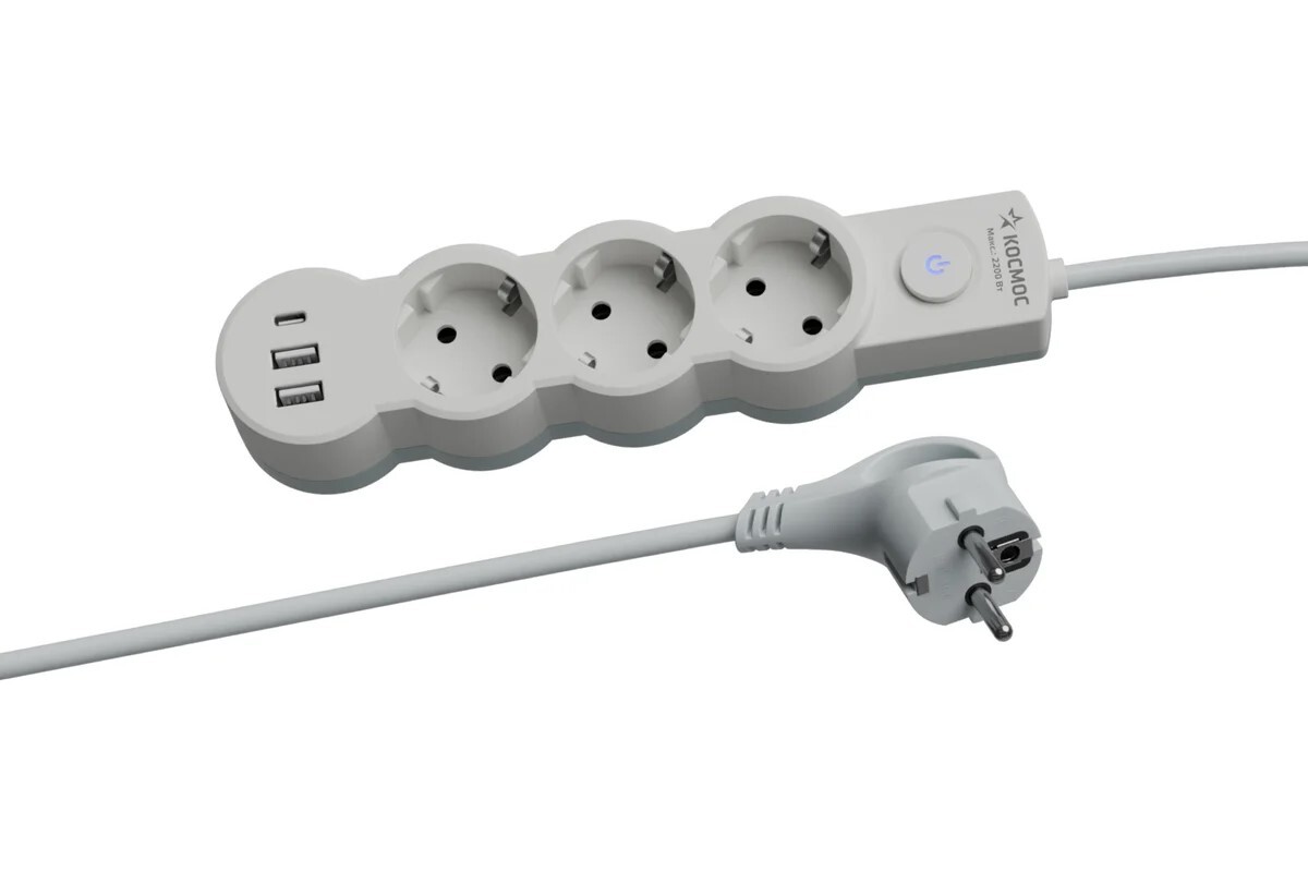Сетевой фильтр, удлинитель Космос YKsm3m3g-Z-VU10A-W