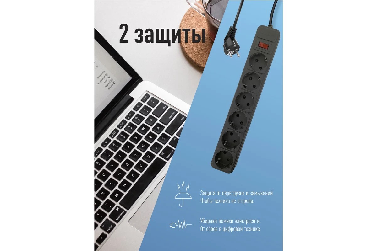 Высокомощный черный сетевой фильтр 3м на 6 гнезд - лучший выбор для домашнего медиацентра. Две защиты для гаджетов и дорогой техники – варистор для защиты от «плохого» тока и терморазмыкатель для защиты от перегрузки и замыкания в сети. Корпус из негорючего полипропилена, 100% медный кабель ПВС 3х1мм (с заземлением). Контактная группа из латуни не деформируется со временем. Максимальная мощность подключения 3500Вт – хватит для целого ряда мощных устройств одновременно.