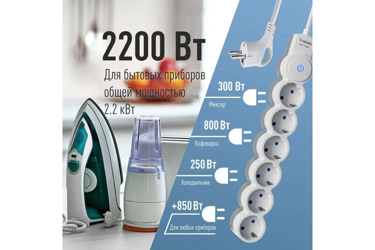 Сетевой фильтр, удлинитель Космос Удлинитель YKsm5m-6g-Z-V10A-W для Космос