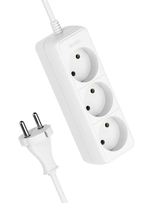 3 розетки 7 метров, 16A, 220 вольт, ПВС 2х1.5, IP20
