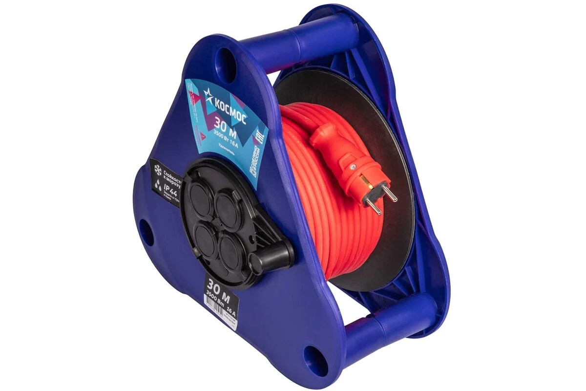 Сетевой фильтр, удлинитель Космос Удлинитель YKTK30m-4g(2.5)KG-IP катушка-треугольник, 4 розетки 30 метров, 16А, 220 вольт, КГ 2х2.5, IP44 - купить в компании MAKtorg Артикул: 1510040