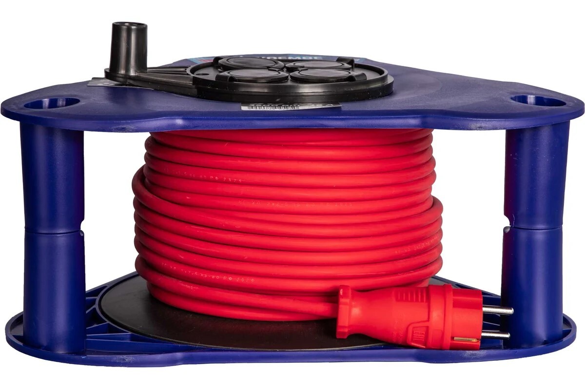 катушка-треугольник, 4 розетки 30 метров, 16А, 220 вольт, КГ 2х2.5, IP44