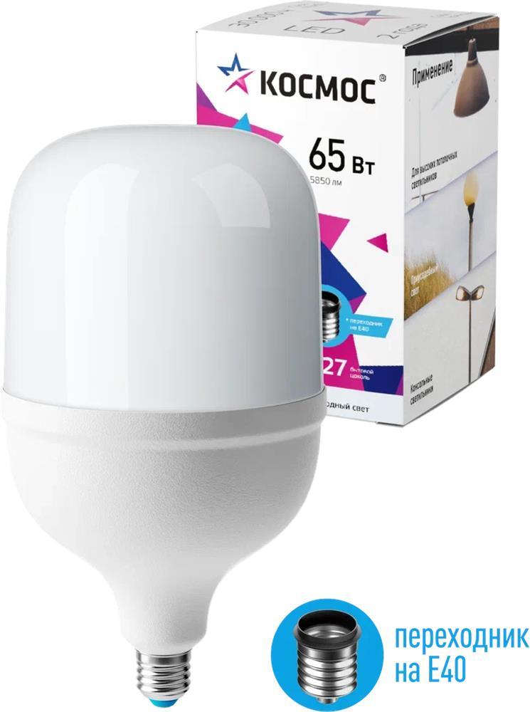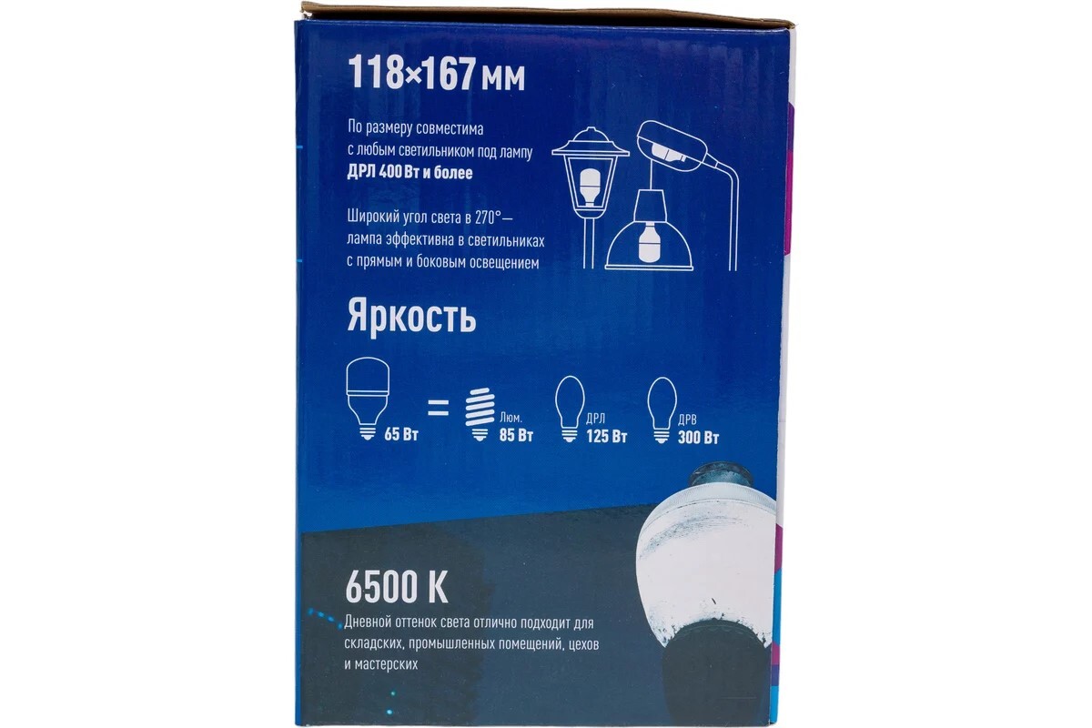 цоколь E27, переходник в комплекте на Е40, цилиндр HW, 65Вт=520Вт, холодный 6500k, световой поток 4700лм, 220 вольт