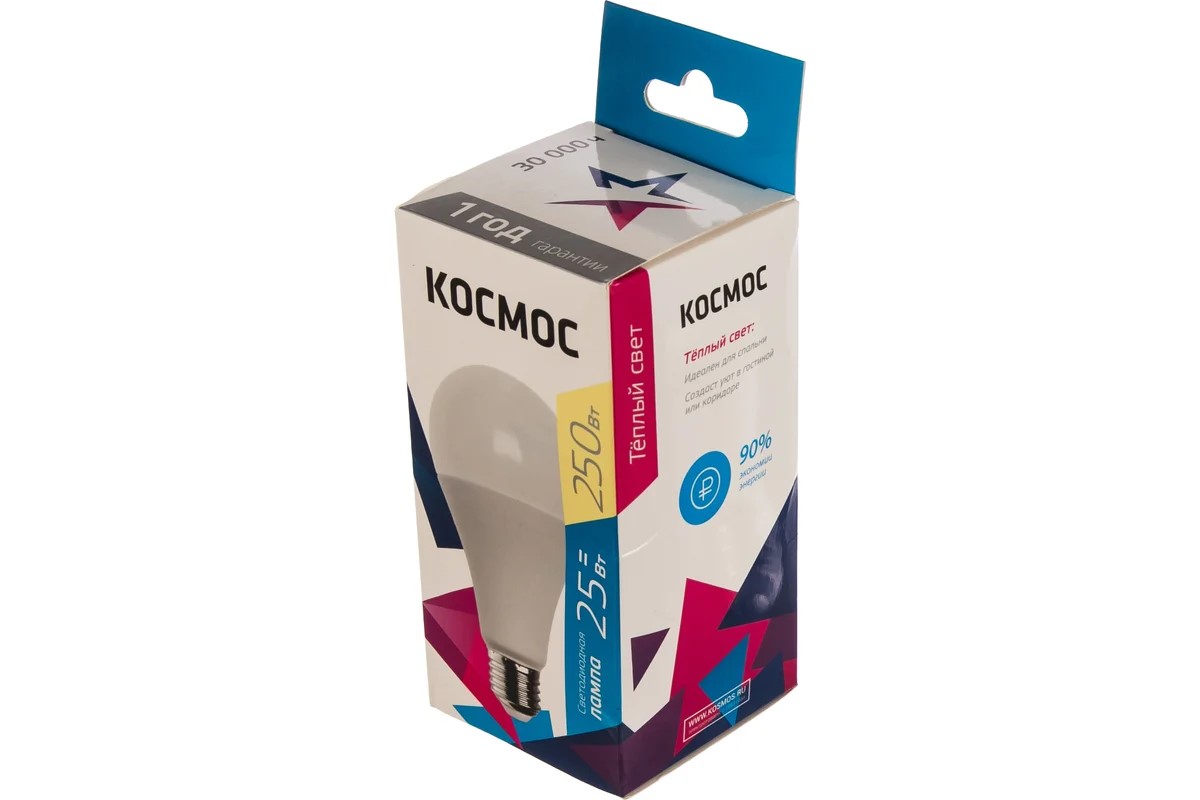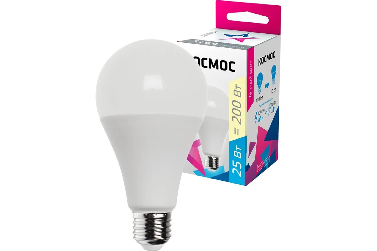 Лампа светодиодная Космос  LkecLED25wA65E2730 цоколь E27, груша А65, 25Вт = 200Вт, теплый 3000k, световой поток 2100лм, 220 вольт - купить в компании MAKtorg Артикул: 4000079