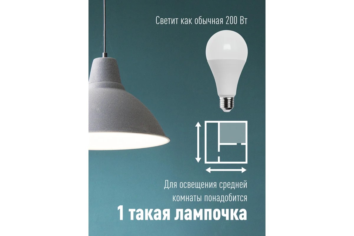 цоколь E27, груша А65, 25Вт = 200Вт, теплый 3000k, световой поток 2100лм, 220 вольт