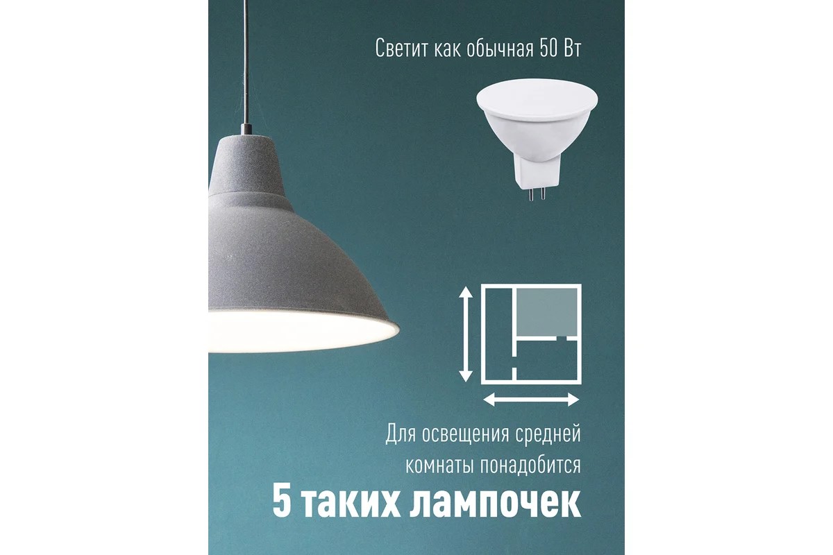 цоколь GU5.3, софитная JCDR, 6.5Вт = 50Вт, теплый 3000k, световой поток 520лм, 220 вольт