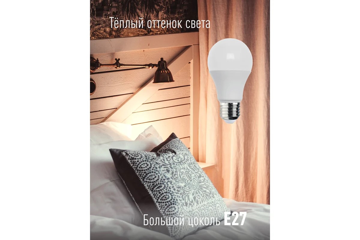 цоколь E27, груша А60, 13Вт =110Вт, теплый 3000k, световой поток 1040лм, 220 вольт