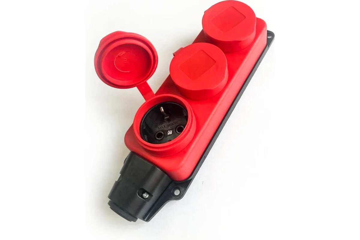 штепсельная 3 гнезда, каучук, красный, заземление, 16А, IP44